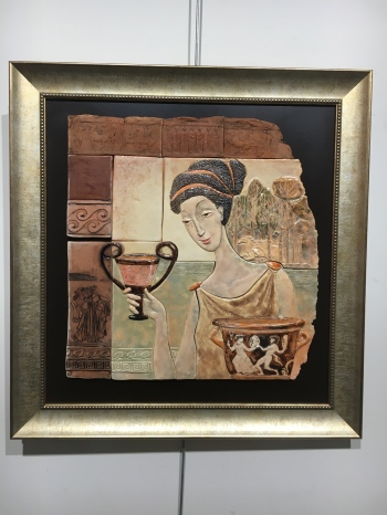 Керамичните картини са изработени от шамотизирана глина с глазура, както и от комбинация на шамотизирана бяла и червено изпечена глина, допълни Маргарита Иванова.
