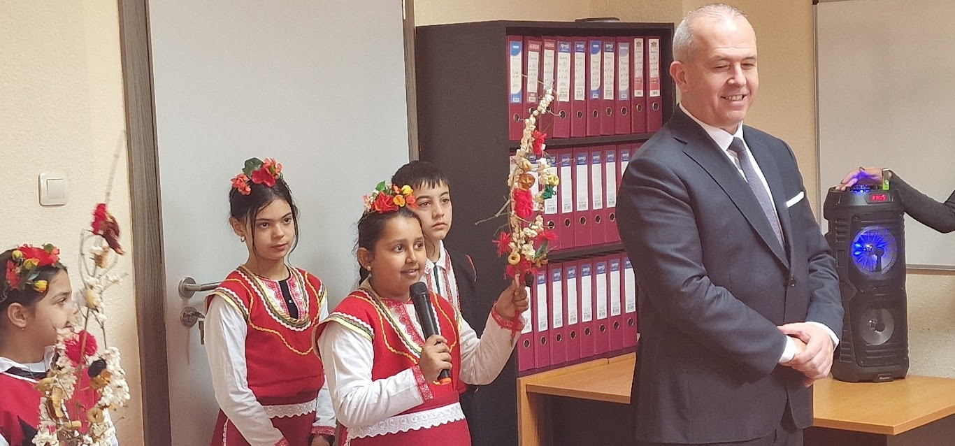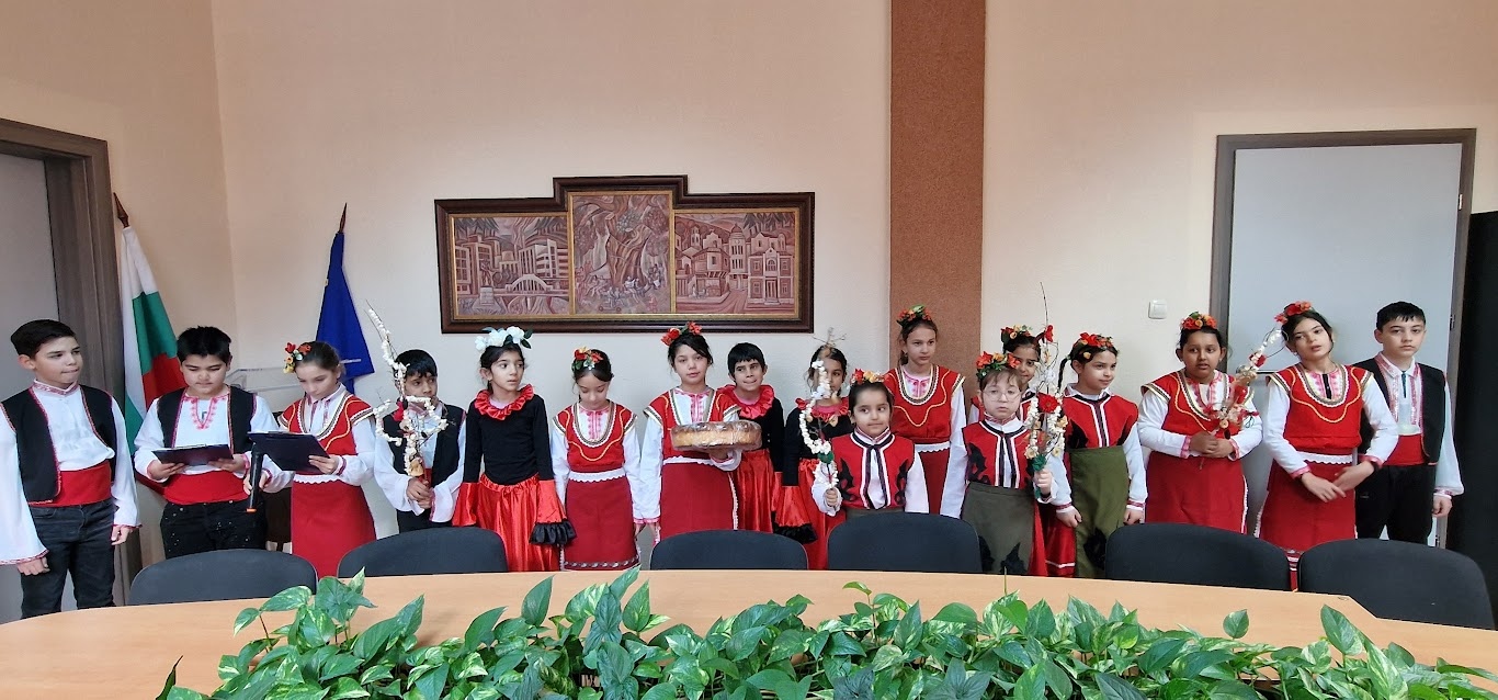 Празнично облечени и изпълнени с настроение, възпитаниците на училището, заедно със своите ръководители и директора Виолета Паева, посетиха Общината, за да отбележат Новата година според ромския календар. Децата сурвакаха за здраве, късмет и благополучие, като изнесоха кратка, но вълнуваща програма, представяща богатството на ромските фолклорни традиции и обичаи.
