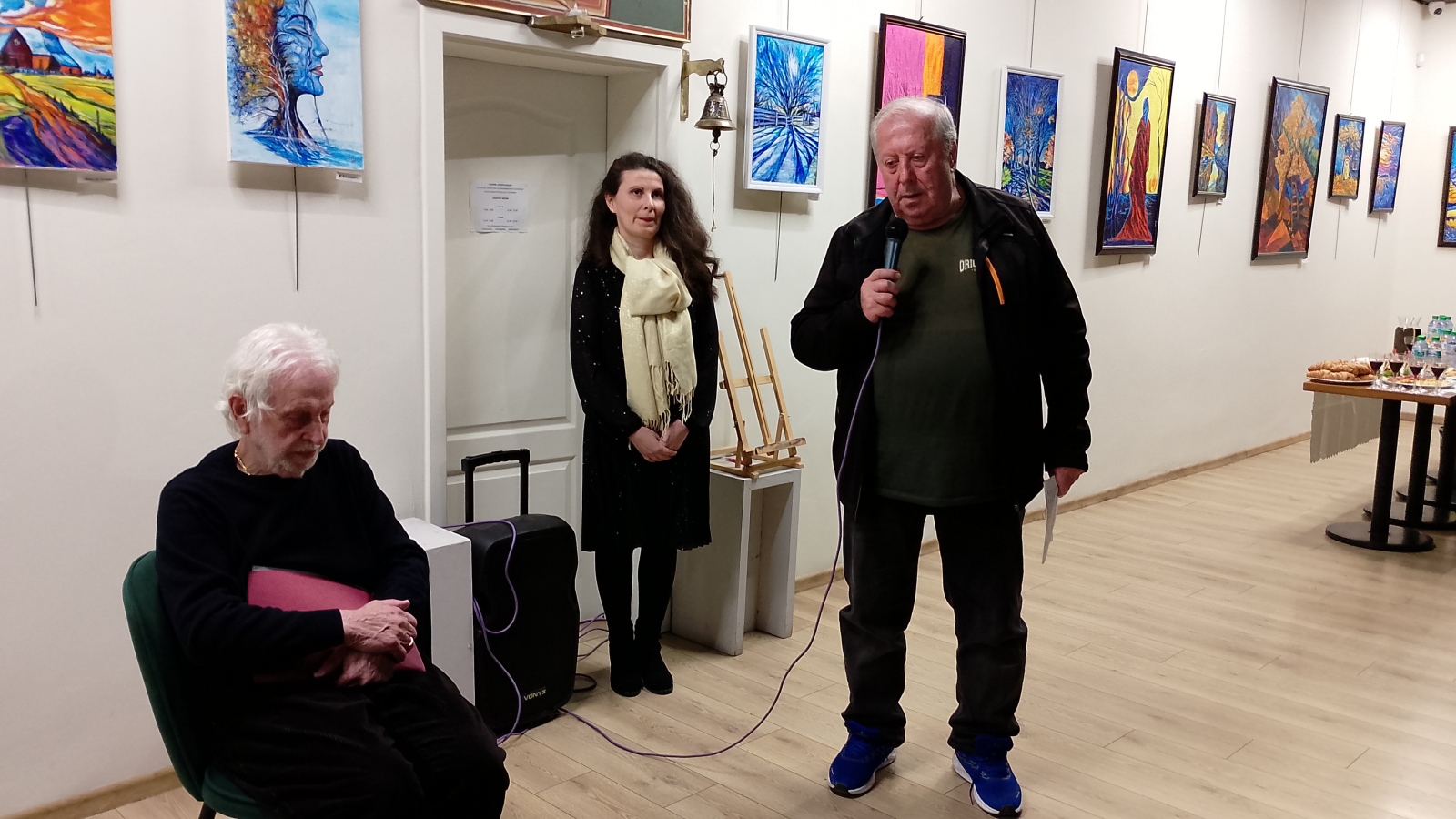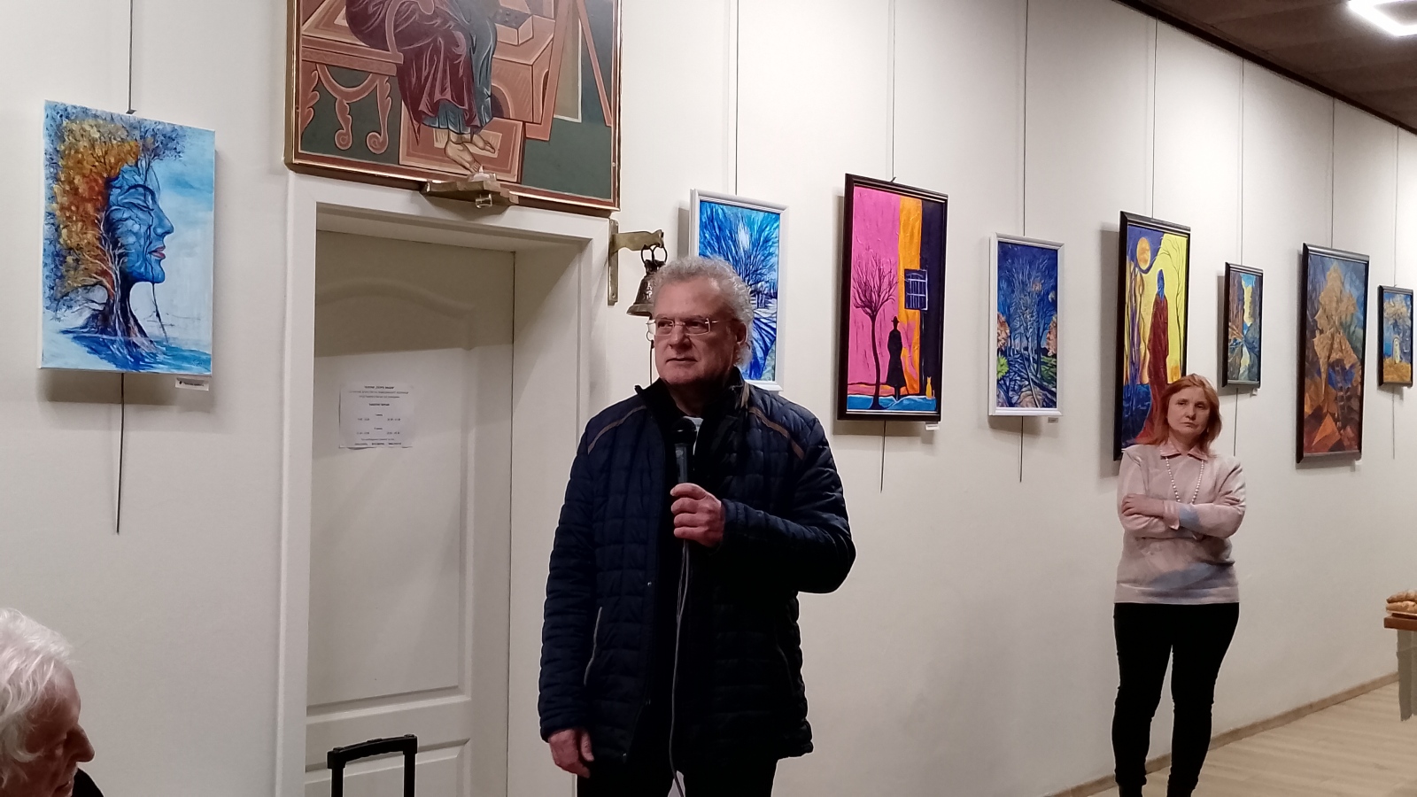 ПАЗАРДЖИК. Галерия „Георги Машев“ приюти „искрящата от светлина“ изложба на писателя и художник Стоян Динков, както я определи Хари Харалампиев – един от приятелите на покойния баща на твореца – гениалния поет Иван Динков. Над 30 платна от пъстроцветния свят на Стоян Динков приковаха погледите в салона на Дружеството на пазарджишките художници, сред които бе и кметът на общината Петър Куленски. Идеята за събитието е на Десислава Георгиева, която изрази надежда, че тази първа експозиция ще повлече крак и за следващи.