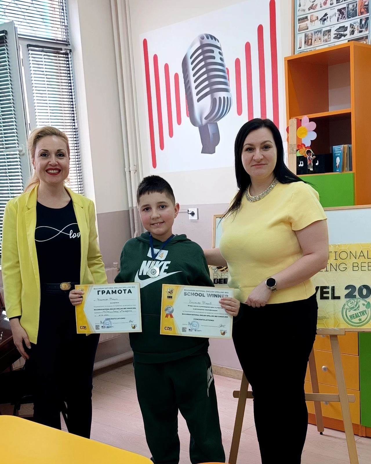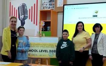 ПАЗАРДЖИК. На 12.02.2026 г. в НУ „Васил Левски“ - Пазарджик се проведе училищният кръг от шестнадесетото издание на Националното състезание по правопис на английски език Spelling Bee. В оспорвана надпревара първото място спечели Марина Славкова от 4. „а“ клас, която спелува правилно думата currant. Второто място зае Кристиян Тошев, 4.“в“клас. Двамата ученици се класираха за регионалните квалификации на състезанието, които ще се проведат на 10-11 март, а най-добрите сред тях ще участват в регионалните финали на 28 март 2026 г.