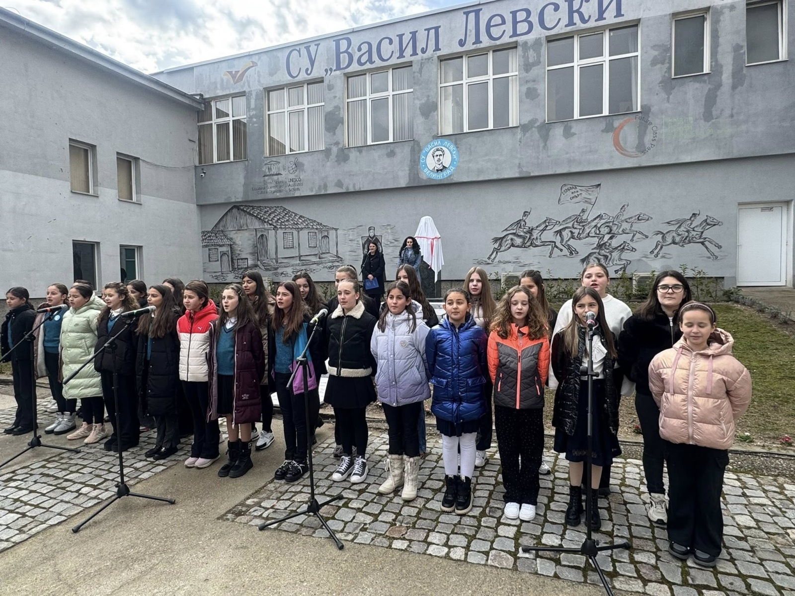В двора на училището бе обособено красиво и достойно пространство, от което Апостола на свободата „гледа“ гордо и вдъхновява бъдещите поколения. Стената зад паметника бе художествено изрисувана от учителя по изобразително изкуство Георги Стефанов заедно с няколко негови талантливи ученички от шести клас – впечатляващ жест на приемственост между поколенията и живо доказателство, че делото на Левски продължава да се твори с ръцете и сърцата на младите.