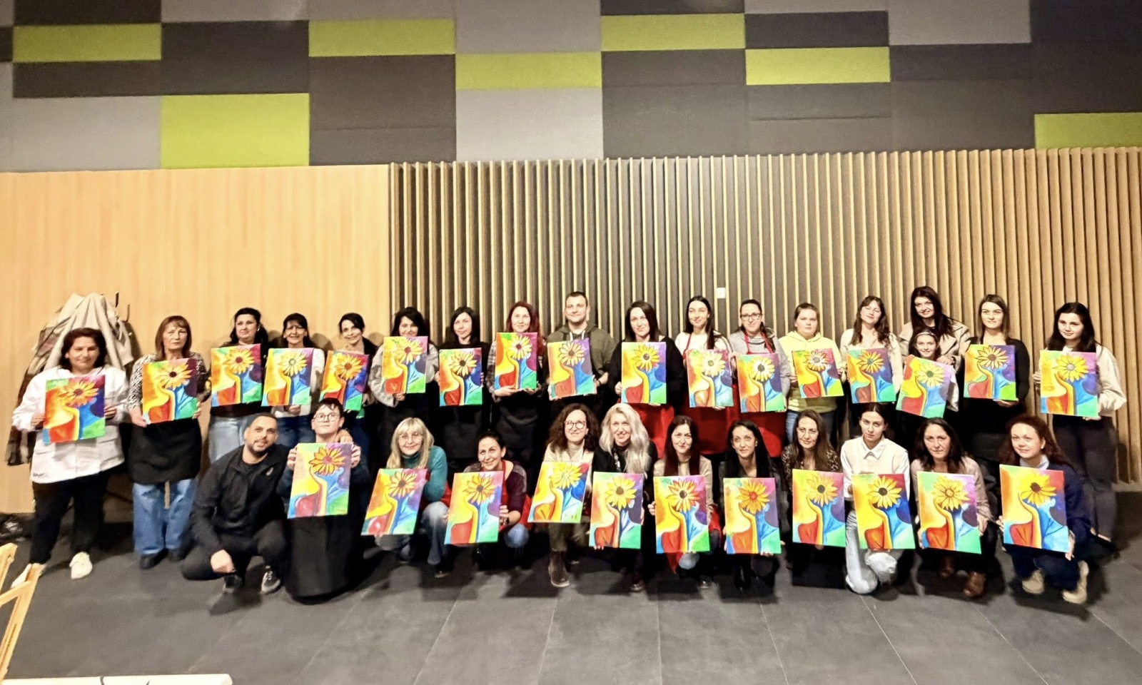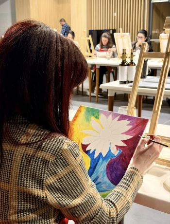 Столовата на "Биовет" АД се превърна в гигантско ателие за рисуване във вторник вечерта, когато тридесет служители на фирмата взеха участие в инициативата "Рисуване и вино". Събитието бе организирано по идея на Станимира Батаклиева, като се превърна в благотворителна кауза.
