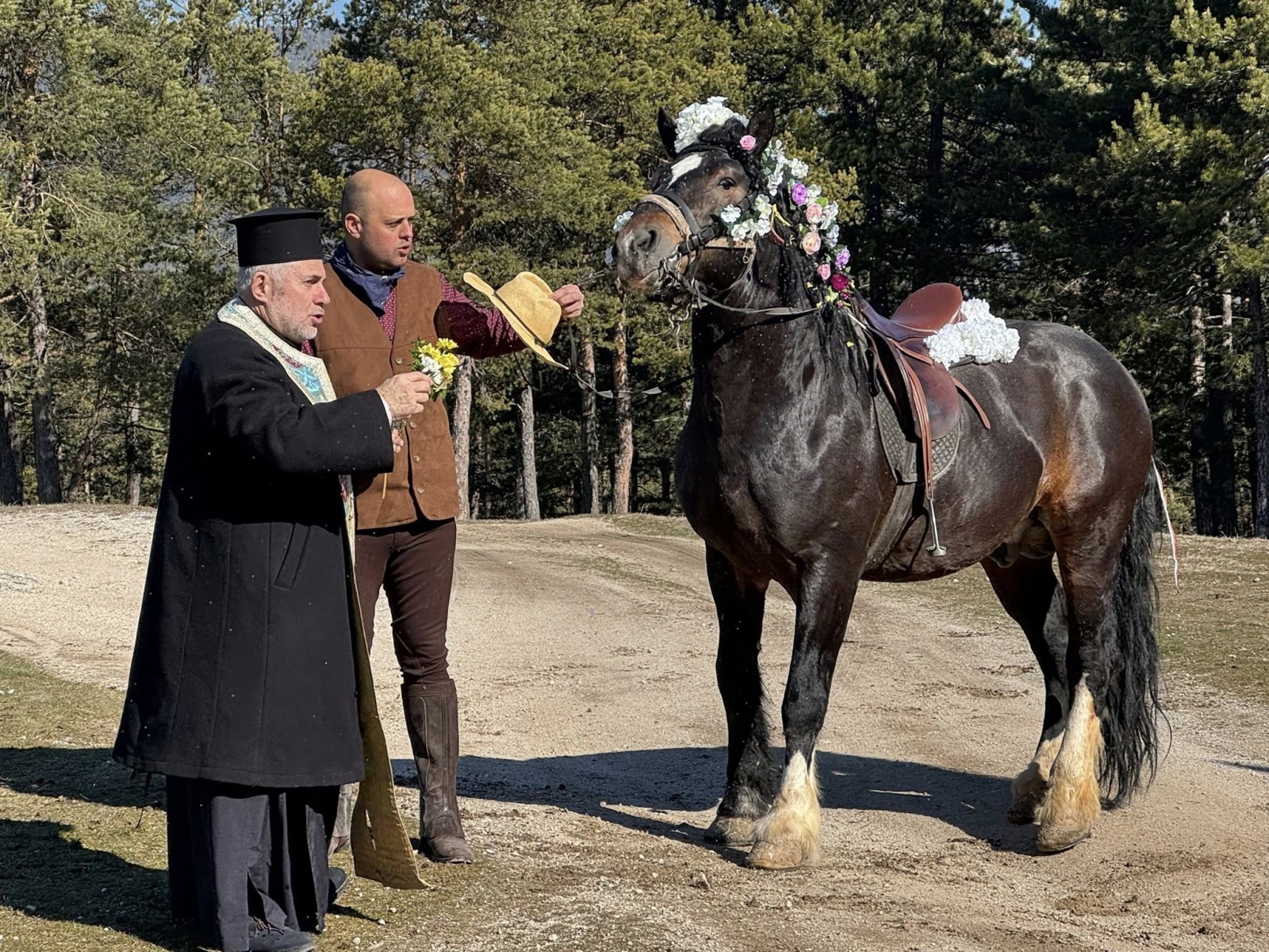 Празничният ден започна с водосвет за здраве и благополучие на имениците, стопаните и техните коне, отслужен от енорийския свещеник отец Антон пред параклис „Свети Георги“, както и с благославяне на обредни хлябове.