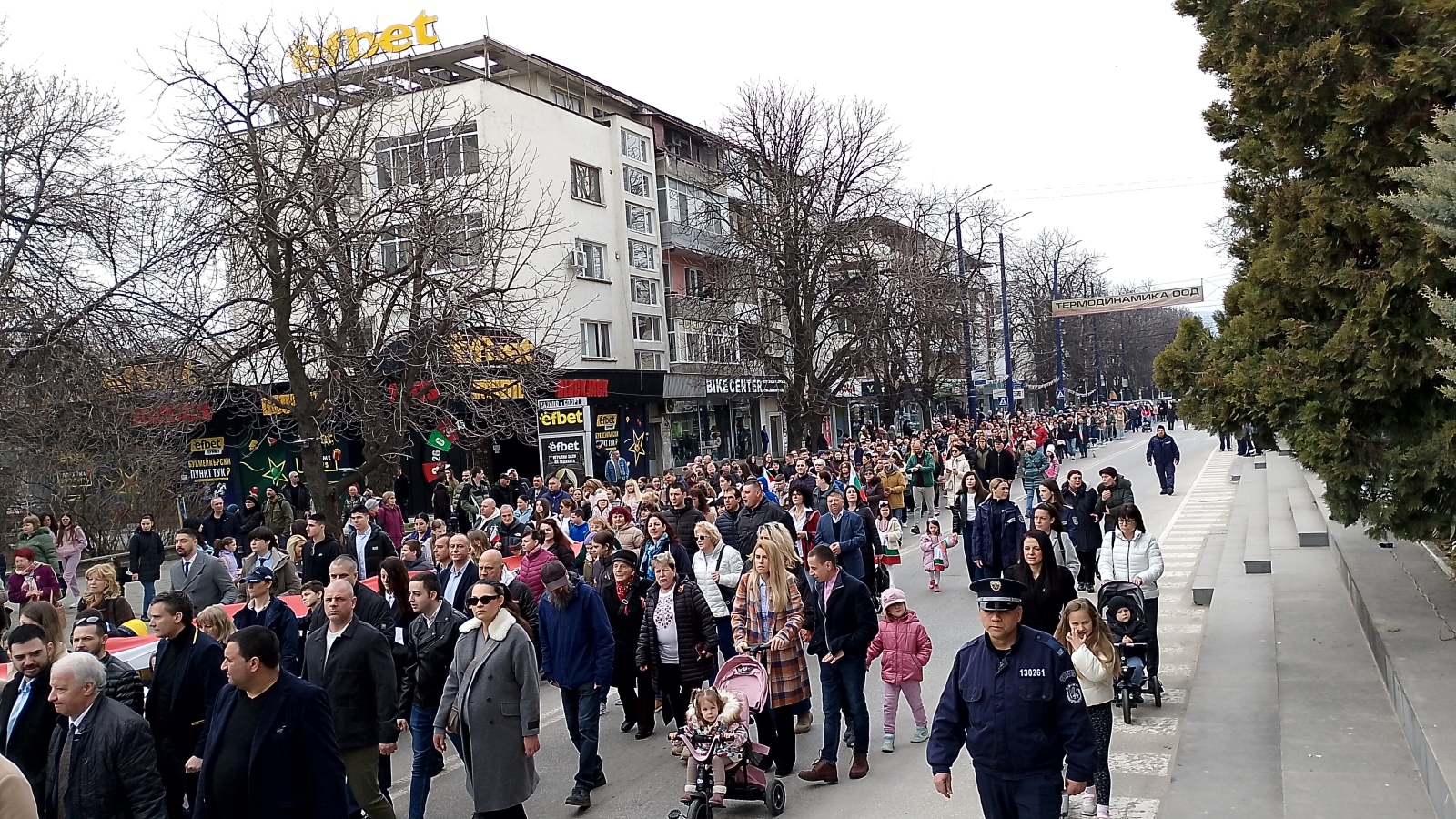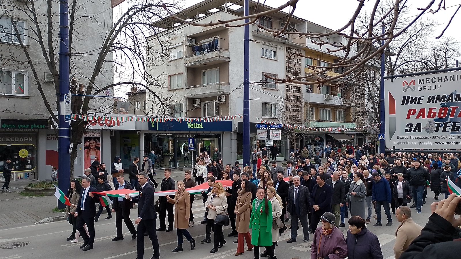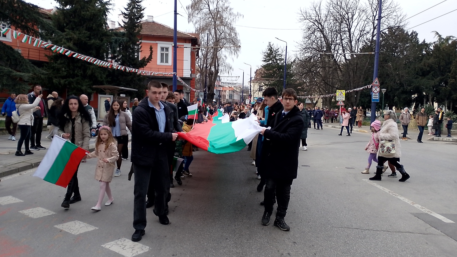 Стотици пазарджиклии излязоха като участници и зрители за Третомартенското шествие със 100-метровото знаме послучай днешния национален празник, с който отбелязваме освобождението от османско иго. Представители на местната власт и на институциите, депутати, граждани, водени от членове на НД "Традиция", кмета на общината Петър Куленски, областният управител Любомир Щечев и председателя на Общинския съвет Десислава Георгиева преминаха по централния булевард "България", като началният пункт бе НЧ "Виделина - 1868 г.". Шествието премина покрай сградата на Общината и продължи до Тортата, където тържествено бе вдигнато знамето на Република България под звуците на националния ни химн.