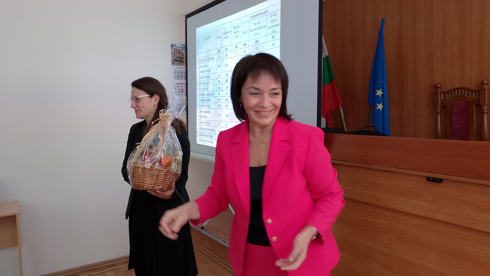 Съдия Веселка Златева изтъкна професионализма и всеотдайността на всеки един от колегите си и нееднократно им благодари. Подаръци имаше и за отличниците - съдиите Мария Колева, Георги Видев и Дияна Найденова.