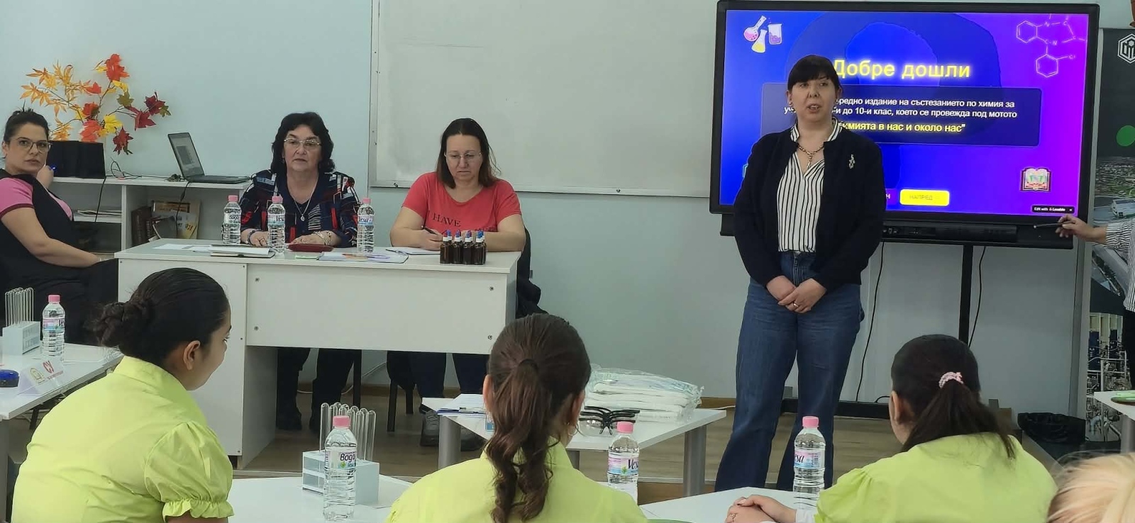 На трето място останаха ПГХХТ - гр. Пазарджик с отбор - Камелия Делова – 10.а клас, Рени Янкова – 10.а клас, Запринка Запринова – 8.г клас и Надя Маврева – ръководител на отбора.