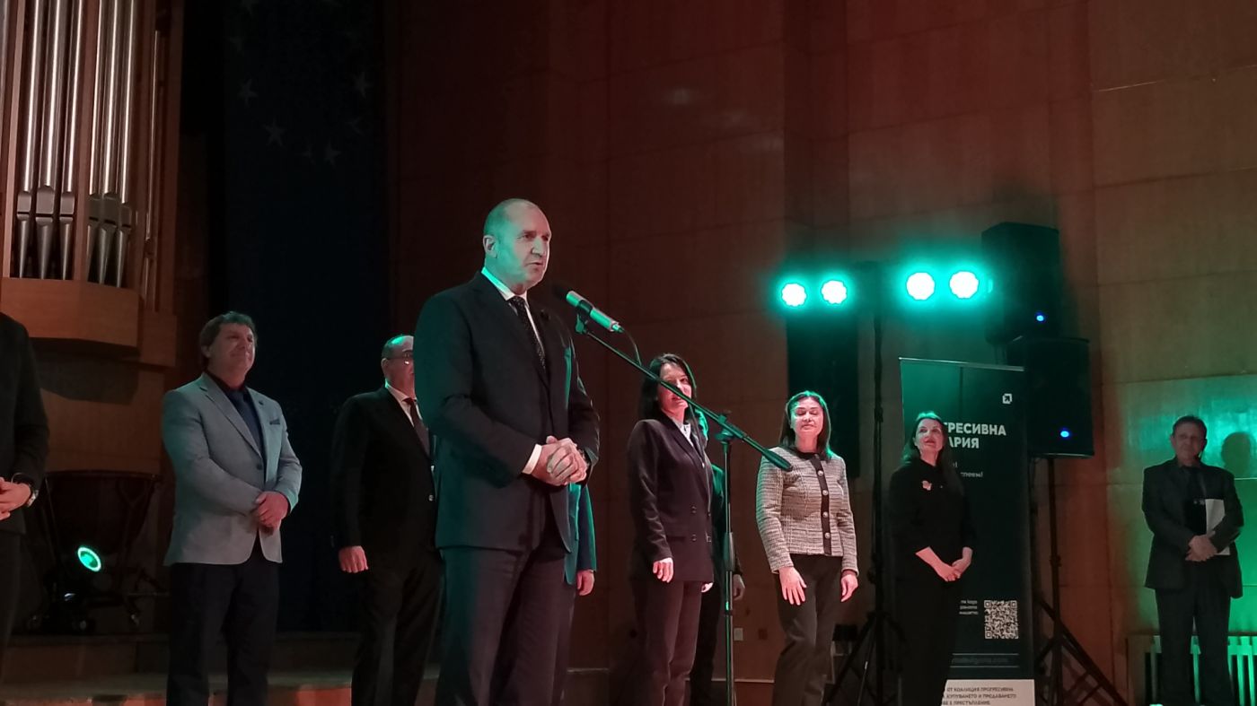 „Искам да ви благодаря за тази препълнена зала – аз не гледам социологията, но съм сред хората и виждам техните страхове, послания и техните надежди. Ние сме единствената политическа сила, която прави кампания в зали и на площади… И тази „социология“, която ни показвате тази вечер, и тази енергия, ясно ни казват, че ние ще спечелим тези избори. Въпросът е с колко. Защото сглобката не е разглобена – от една страна е ГЕРБ и Пеевски, от другата страна е „Продължаваме промяната“. Те продължават да са заедно. Вижте как ПП, чието е служебното правителство, не махат шефа на ДАНС, за да не падне охраната на Пеевски. Аз ви гарантирам, че ще дадем всичко от себе си да превърнем в реалност нашата програма. Включително да накажем онези, които през главата ви въведоха еврото. Които обещаваха, че цените няма да растат нагоре и ще се изсипе златен дъжд от инвестиции, всъщност оставиха всички нас на произвола на галопиращите цени. Без никакви финансови буфери, без никакви финансови мерки, без никакъв контрол. И най-важното – без мисъл какво ще се случи с хората. Те не ви питаха за еврото – сега вие не ги слушайте за изборите“, заяви в кулминацията на речта си Румен Радев.
