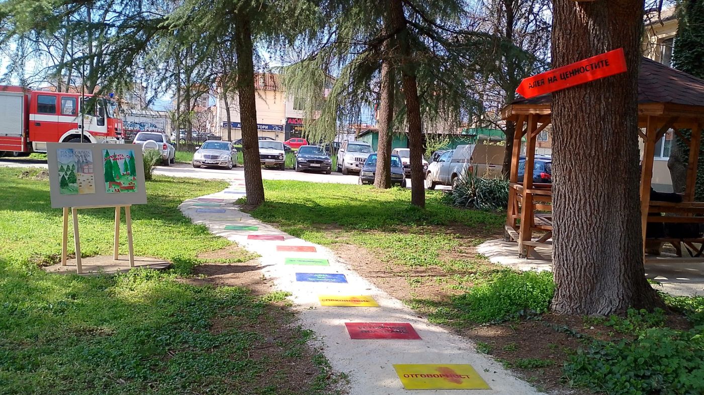 Инж. Златарев поздрави колегите си и фокусира вниманието си върху изградената по собствена идея на дирекцията Алея на ценностите. „Посланието е най-вече към децата, но и към възрастните, да се възпитат или да си припомнят достойнствата на нашата гора. Първото „стъпало“ в нея е „Извор на живот“. Защото гората е здраве, горите са белите дробове на планетата. Но тя е и дом за различни горски и растителни обитатели, тя трябва да е място за устойчиво ползване, място без огън, място за спокойствие, тишина и вдъхновение, място за залесяване, на чистота, но и на бъдещето – старите гори са носители на генетичната памет, която трябва да запази живота в условията на климатичните промени… Затова на всяка плочка на тази пътека има различни ключови теми-послания“, поясни зам.-директорът на РДГ Пазарджик.