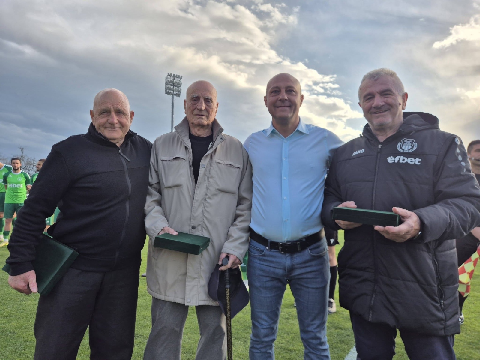 Преди днешния двубой ФК Хебър отдаде заслужена почит към част от своите легенди. Ръководството на клуба отличи трима от своите ветерани – хора, които са оставили сърцето и душата си за Хебър и пазар5джикия футбол и които през изминалия месец отпразнуваха своите кръгли юбилеи. Президентът на клуба Валентин Василев поднесе поздравления и връчи паметни плакети на Христо Паинков – Сърбина (90 г.), Никола Фотев (80 г.) и Никола Райчев (70 г.).