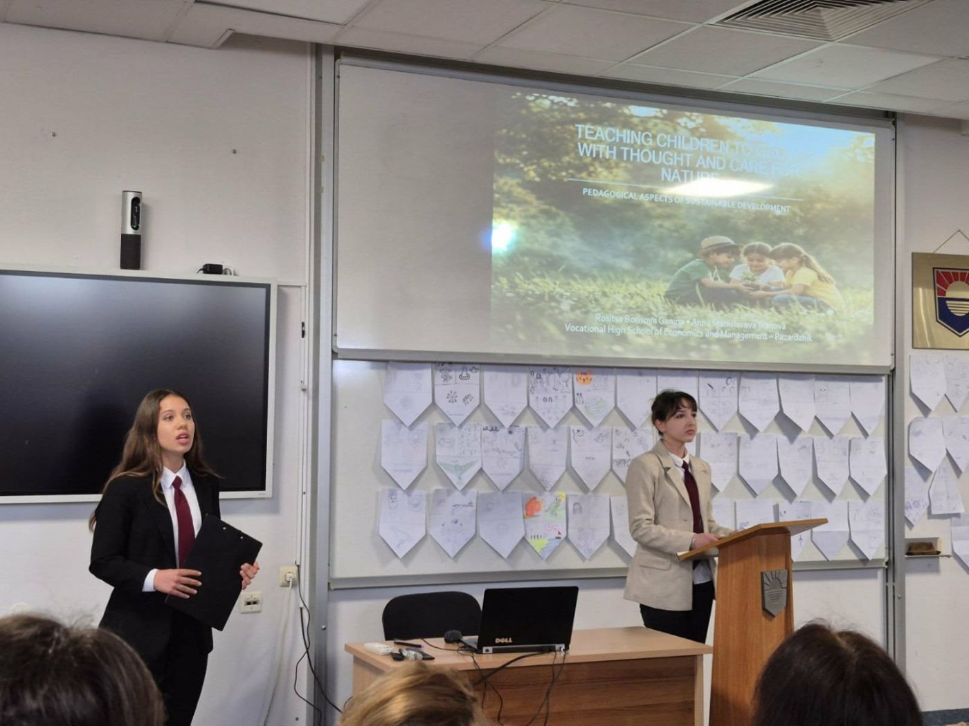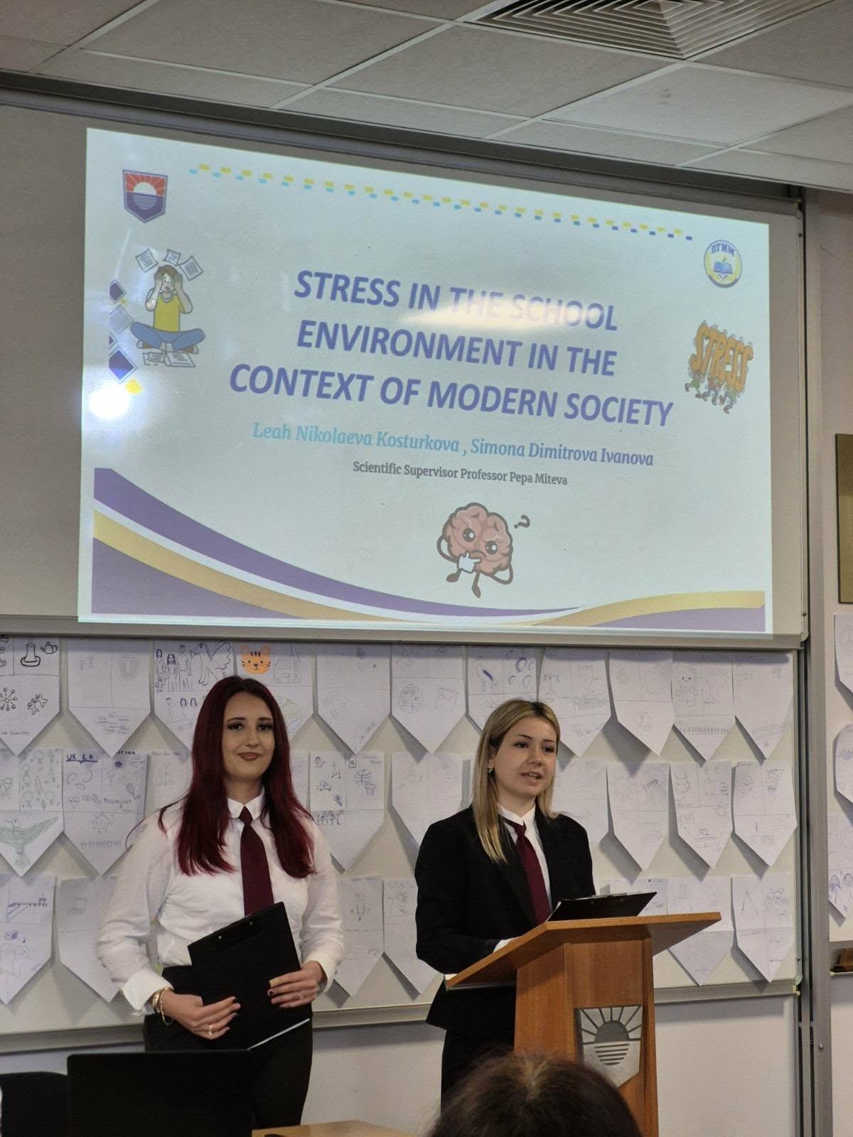 Три екипа от 11. клас достойно представиха нашето училище. С увереност, знания и ангажираност те защитиха своите разработки по изключително актуални и значими теми: „Учим децата да растат с мисъл и грижа за природата“ – Росица Гънина и Анна Благова от 11. Е клас „Пътнотранспортни произшествия в България и повишаване на пътната безопасност“ – Дарина Дачева от 11. А клас „Стресът в съвременното общество и в училищната среда“ – Лия Костуркова и Симона Иванова от 11. А клас Техен научен ръководител и вдъхновител беше проф. д-р Пепа Митева, чиято подкрепа и професионализъм допринесоха за отличното представяне. Техният труд и отдаденост бяха заслужено отличени с: грамоти за участие, плакети/статуетки за успешна тематична разработка, публикация в научното списание на форума. Този успех е доказателство, че когато знанието срещне мотивацията, се раждат истински постижения. Вярваме, че това е само началото на още много бъдещи успехи!", изтъкват от училището.