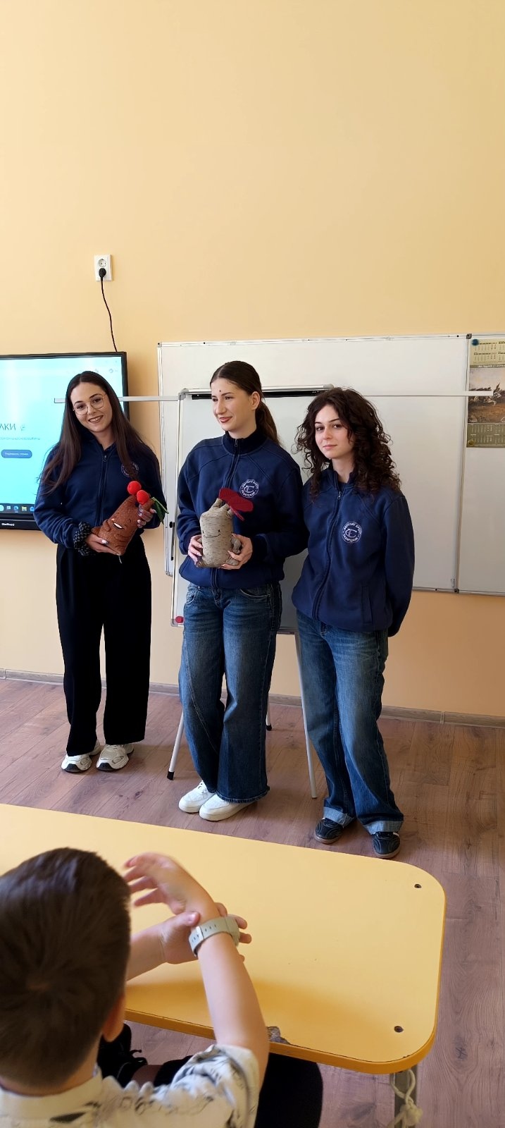 Трима от младшите посланици на Европейския парламент – Дария, Ивайла и Елиана от Езикова гимназия „Бертолт Брехт“ – взеха участие в вдъхновяващ урок на зелена тематика, проведен съвместно с ученици от НУ „Васил Левски“ в Пазарджик. Атмосферата на занятието беше разчупена от талисманите на билковата градинка – Флориан и Цитрус, които допринесоха за доброто настроение и активното включване на учениците. Урокът беше организиран чрез работа по групи, което насърчи сътрудничеството и споделеното учене. Инициативата се реализира по покана на г-жа Гълъбинова и г-жа Манчорова, които включиха по-големите ученици като ментори в учебния процес.