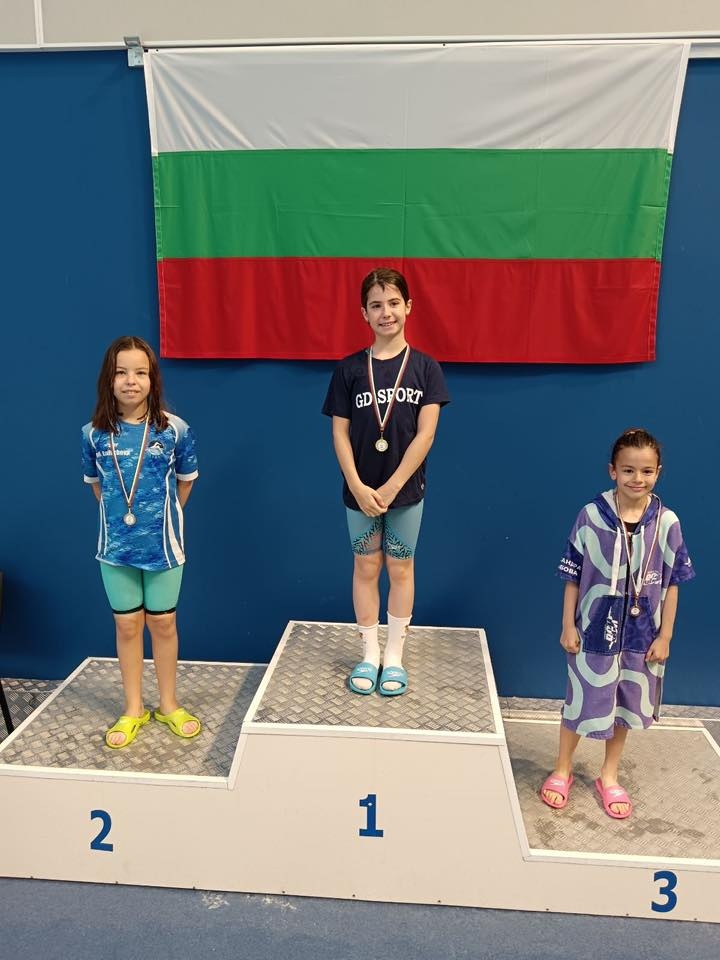 Преслава Шиндарова /2015/ с бронзов медал на 50 м свободен стил. 9-то място по брой точки при 11–12-годишните.